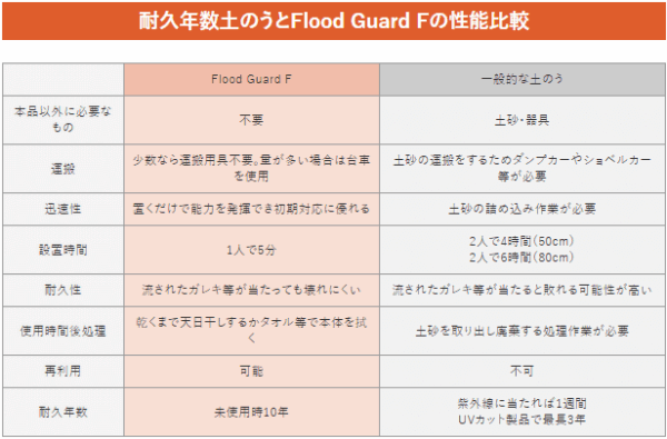 従来使われていた土のうと簡易型止水板とではさまざまな部分で違いがあります。